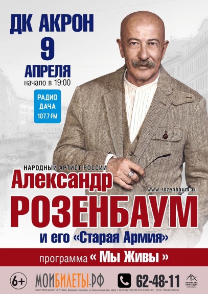 У Александра Яковлевича с совестью всё в порядке. Она в его стихах — их более семисот, в его книгах — их пятнадцать, в его актерских работах — достаточно вспомнить «Не хлебом единым» и, конечно же, в песнях, многие из которых, оставаясь любимыми и застольными, постепенно переходят в ещё более высокую категорию — народных. По настоящему народных. «Казачья» и «Глухари», «Вальс-бостон» и «Ау», «Черный тюльпан» и «Утиная охота» — этим и другим прекрасным песням, конечно же, найдется место в предстоящем концерте, а если автор, вдруг, о какой-нибудь из них и забудет — зритель обязательно напомнит. И подпоёт. И это, помимо цветов и аплодисментов, наверное, и будет лучшим подарком для Народного артиста Российской Федерации, кавалера многих Государственных наград, полковника медицинской службы, поэта, певца, музыканта, композитора… и просто хорошего человека — Александра Яковлевича Розенбаума.