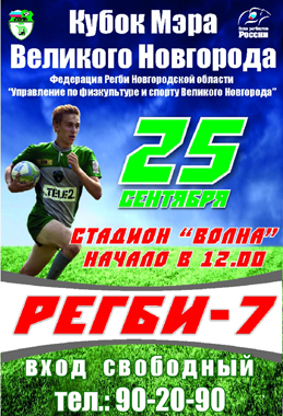 25 сентября 2010г. в Великом Новгороде состоится турнир по регби-7.
