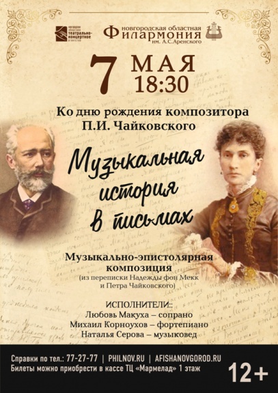 Музыкально-эпистолярная композиция «Музыкальная история в письмах». В день рождения великого русского композитора. В программе романсы и арии из опер П. И. Чайковского, переписка композитора и Надежды фон Мекк.