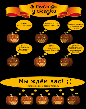Тип игры: стандартная игра Zona Dozora с 30 на 31 октября в ночь на Хэллоуин.
