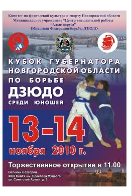 13-14 ноября 2010 года в Великом Новгороде в третий раз будет проходить открытый областной турнир «Кубок Губернатора Новгородской области по борьбе дзюдо среди юношей».