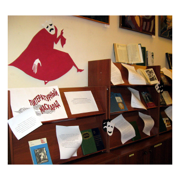 «Литературный маскарад» выставка - игра по литературным мистификациям и псевдонимам. Литературными мистификациями принято называть литературные произведения, авторство которых умышленно приписывается какому-либо лицу (реально существующему или вымышленному) или выдается за создание народного творчества.