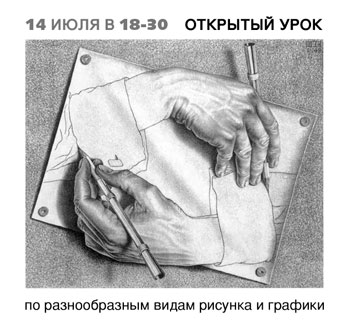 14 июля состоится открытый урок по разнообразным видам рисунка и графики. Ведет Оксана Плотникова.