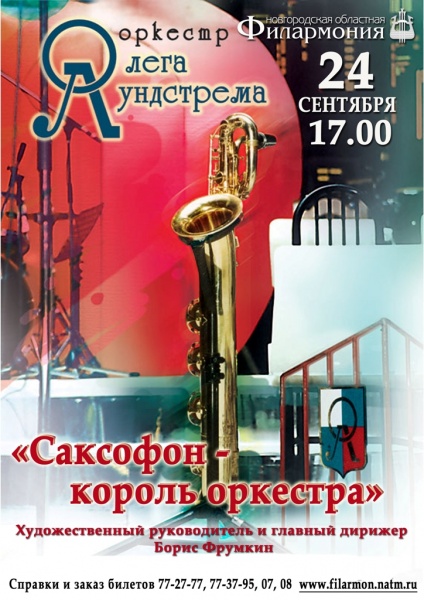Концерт оркестра джазовой музыки имени Олега Лундстрема с программой «Саксофон-король оркестра». Художественный руководитель и главный дирижер, Заслуженный артист России Борис Фрумкин.