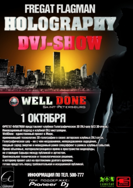 Инновационный подход к клубной DVJ инсталяции. WellDone - единственный проект в Мире, применивший технологию 3D-голографии в своих авторских клубных DVJ сетах.