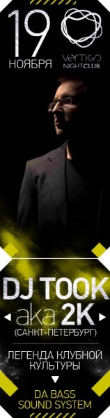 В гостях VERTIGO night club настоящая "Легенда клубной культуры": Dj TooK aka 2K (SPb).