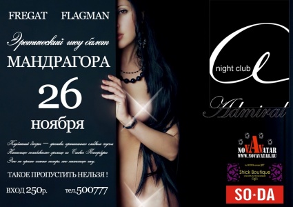 Фрегат Флагман представляет вашему вниманию клубничный десерт — эротика, пропитанная сладким соусом. Настоящее незабываемое зрелище из великого города и законодателя российской event культуры Санкт Петербурга - эротический шоу-балет "Мандрагора".