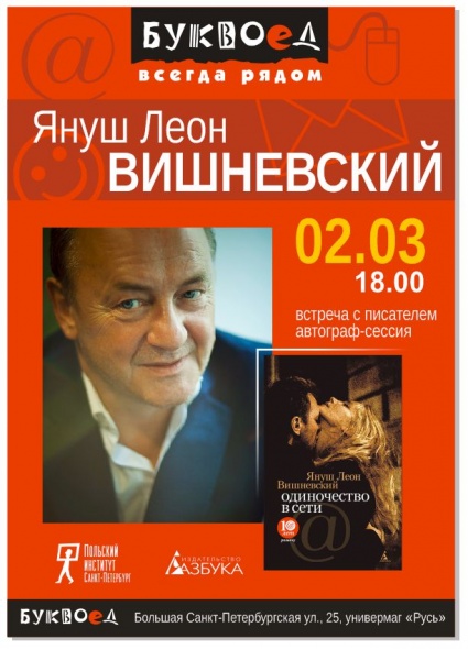 В книжном клубе "Буквоед" состоится встреча с польским писателем, автором самого пронзительного романа о любви последних лет "Одиночество в сети" - Янушем Вишневским.