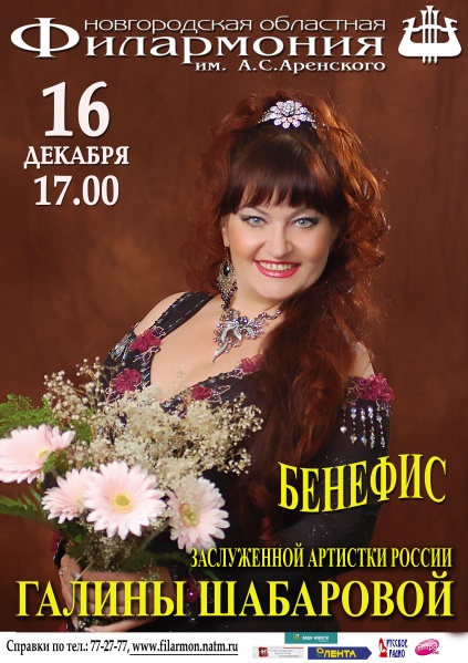 Галина Шабарова - выдающаяся певица, исполнительница русских романсов и народных песен. Творчество певицы отмечается приверженностью к народным песенным традициям и высочайшим талантом. Уже сама природа наделила Галину Шабарову замечательными дарами - русской красотой и поющим самоцветным голосом. Самой природой ей был заповедан репертуар - русская песня и романс.