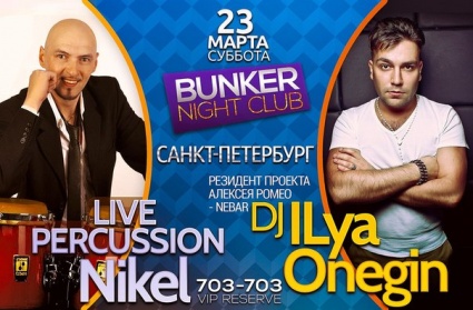 В эту ночь для Вас DJ ILya Onegin & Live Percussion NIKEL.