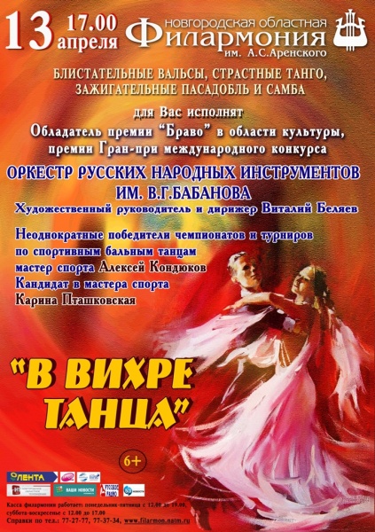 Новый совместный проект оркестра народных инструментов им. В.Г.Бабанова под управлением Виталия Беляева и неоднократных победителей турниров по спортивным бальным танцам, мастера спорта Алексея Кондюкова и кандидата в мастера спорта Карины Пташковской.