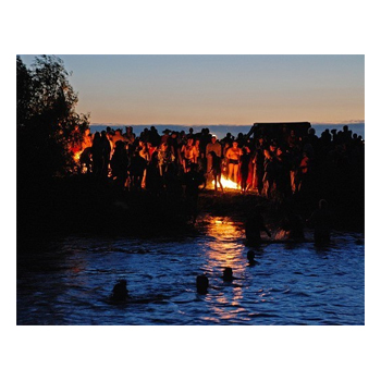 В Купальскую ночь вместе с фольклорным театром «Кудесы» Вы сможете объединиться в обрядовом шествии «стрела» — дороге из скрепленных рук, по которой пойдет самая красивая девушка праздника. Мы вместе будем варить купальскую обрядовую кашу и угощаться настоящей ухой, плести венки и дарить их возлюбленным, возжигать костры и очищаться огнем, совершать обрядовое купание в водах Ильмень-озера.