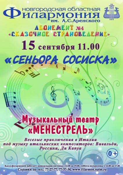 Вместе с музыкальным театром "Менестрель" Вы совершите веселые приключения в Италию под музыку итальянских композиторов: Вивальди, Россини, Ди Капуа.