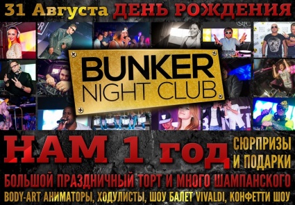 31 августа ночному клубу БУНКЕР исполняется 1 год!