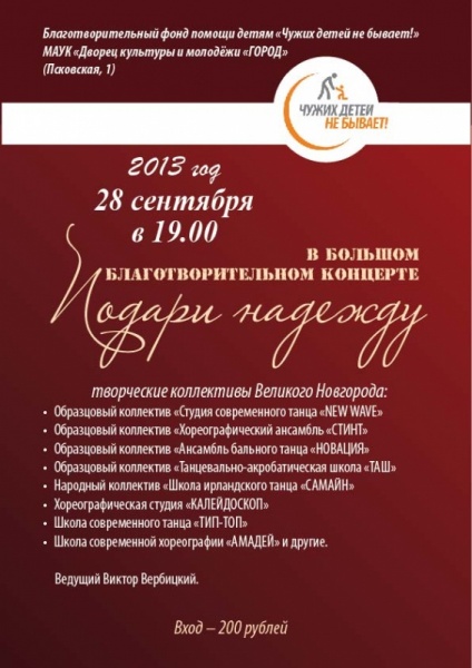 В концерте примут участие творческие коллективы Великого Новгорода: