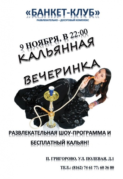 Яркая развлекательная программа, бесплатный кальян и море эмоций.