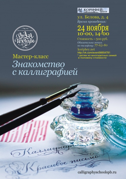 Мастер-класс для Вас проведут специалисты единственного а России центра каллиграфии "От АЗА до ИЖИЦЫ" г. Санкт-Петербург