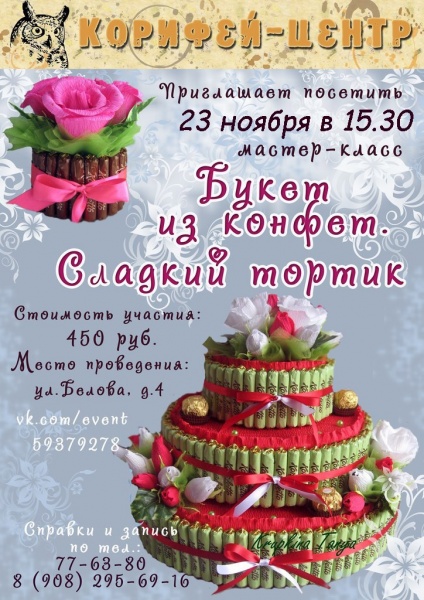 В рамках мастер – класса Вы узнаете о материалах и способах работы с ними, а затем создадите небольшой торт , ароматно пахнущий шоколадом.