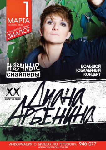 1 марта в 18.30 хиты группы “Ночные Снайперы”, фирменную акустику Дианы Арбениной, ее пронзительные анти-песни и хлесткую прозу (все это войдет в юбилейную программу) услышат и в Великом Новгороде!