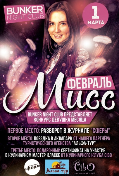 Имя победительницы определится на вечеринке 1 марта, путем прямого голосования посетителей клуба.