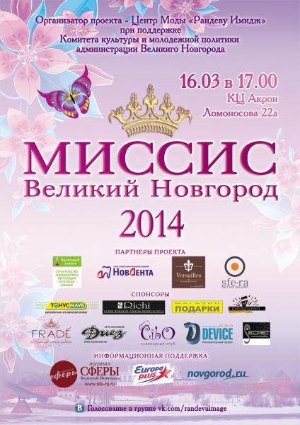 16 марта в КЦ Акрон состоится конкурс "Миссис Великий Новгород 2014".