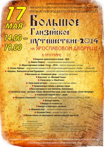 17 мая 2014 года в Международный день Ганзы Культурный центр «Диалог» проводит у Ганзейского знака на Ярославовом дворище «Большое Ганзейское путешествие – 2014». Это событие должно напомнить новгородцам и гостям города о том, что Великий Новгород первым из российских городов стал членом Ганзейского союза нового времени, был инициатором создания Союза русских Ганзейских городов, а также о том, что 22 мая 2014 года в столице Ганзы, немецком городе Любек, откроются XXXIV Международные Ганзейские дни. Новостью для гостей праздника станет то, что Международные Ганзейские дни 2039 года будет проводиться снова в нашем городе, а, значит, самым юным гостям праздника и придется его проводить.