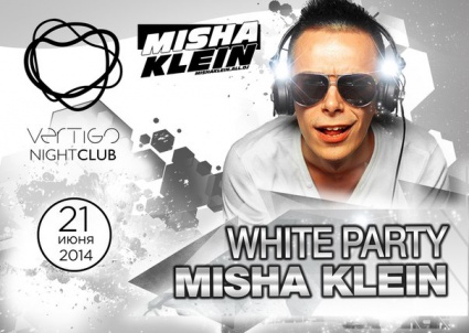 "WHITE PARTY" в VERTIGO night club! Настало время почувствовать ЛЕТО по настоящему! Надевай любимую белую одежду и приходи. Специальный SUPER гость MISHA KLEIN (Spb) - яркий представитель новой волны Deep House движения в России, известный ди-джей и продюсер, входит в десятку лучших Deep House музыкантов страны. Участник официального афтепати Sensation в 2011, 2012 и 2013 году. Резидент крупнейшего российского музыкального лейбла "Luxury Music" (Москва) Автор многочисленных компиляций и множества успешных ремиксов на синглы мировых звезд, с ротациями на крупнейших радиостанциях мира.