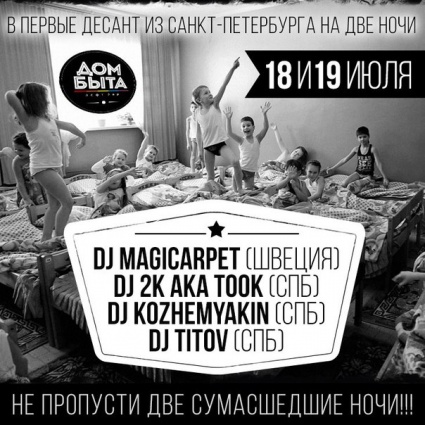 Целая команда диджеев и группа поддержки из СПб! DJ Magicarpet, DJ 2K aka Took, DJ Kozhemyakin, DJ Titov.