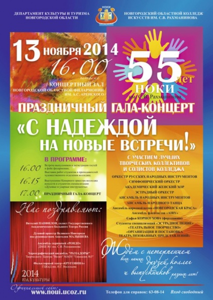 В 17.00 в концертном зале областной филармонии состоится праздничный гала-концерт «С надеждой на новые встречи!» с участием лучших творческих коллективов и солистов колледжа, а также с поздравлениями выступят гости и творческие коллективы выпускников разных специализаций и лет.
