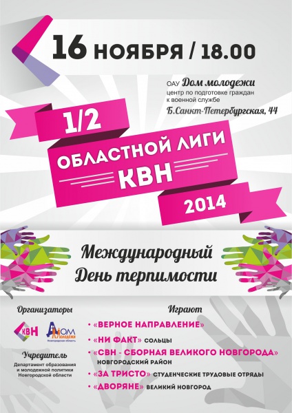 В новгородском "Доме Молодежи" пройдет полуфинал областной лиги КВН.