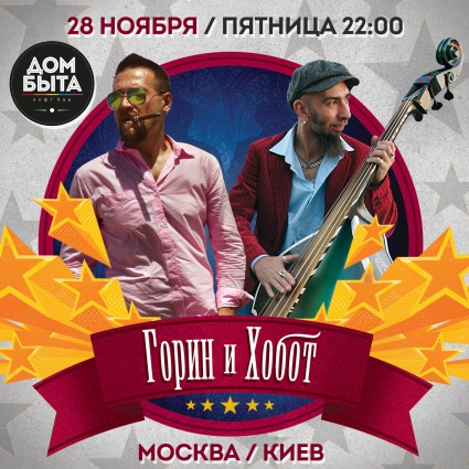 Горин и Хобот — это гитара и контрабас. Сплав двух лидеров собственных проектов – «Chiliбомберс» и «Hobot & Co». Стихи и песни настоящих мужчин о любви, пацанах, гудбай-америке и алкоголе. Ирония и искренность, стеб и душевность! Честность и точность формулировок, которая никого оставит равнодушным.