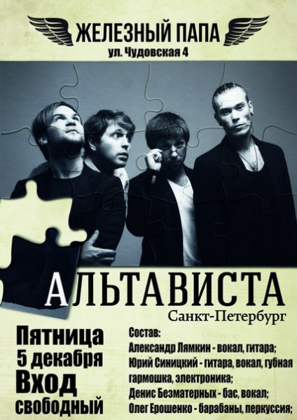 В новгородском клубе "Железный папа" выступит группа "Альтависта" (Санкт-Петербург).