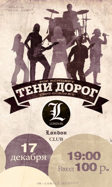Начинает и открывает рок-среды в "London" группа "Тени Дорог".