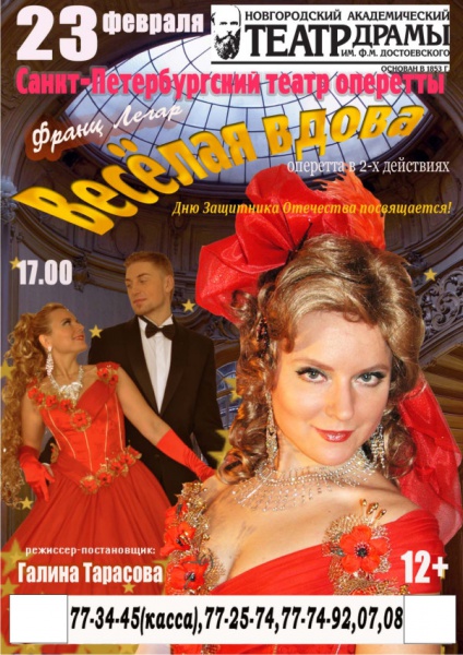 В новгородском театре драмы пройдет спектакль «Веселая вдова» в исполнении артистов Санкт-Петербургского театра оперетты.