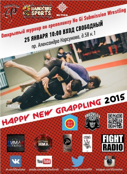 В Великом Новгороде (пр. Александра Корсунова, д.58, к.1) впервые пройдет открытый турнир по грепплингу, среди новичков и любителей, мужчин и юниоров. Грепплинг — вид спортивного единоборства, совмещающего в себе технику всех борцовских дисциплин, с минимальными ограничениями по использованию болевых и удушающих приемов.