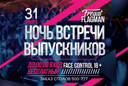 Один раз в году выпускники собираются вместе, чтобы пережить за один вечер все незабываемые годы учебной жизни! Собираемся вместе со старыми друзьями на фрегате Флагман!