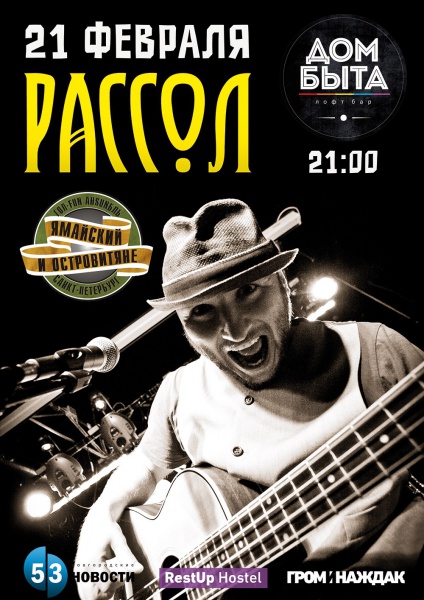 Тайные желания, о которых и рассказать-то стыдно, возникают в душе почти у всех. А вот музыканты новгородской группы "Рассол" не стесняются говорить о своих мечтах. И это не просто песни. Каждый концерт этих гурманов жизни — искрометное шоу. «Высокое» и «низменное» в их творчестве переплетается причудливым образом. Мастера иронии и декаданса порадуют нас эстетикой блюза и кабаре и рок-н-рольным драйвом!
