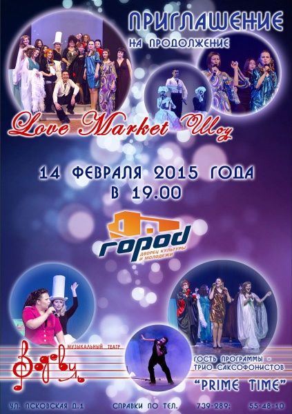 Музыкальный театр "Водевиль" и Дворец культуры и молодёжи "ГОРОД" в день всех влюбленных приглашают на музыкальное ревю!