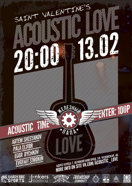 Этот акустический вечер будет кротким, спокойным и семейным. Ничего, что может отвлечь от главного, ничего, что может порвать струны сердца... Все, кто хочет погреться у очага душевного тепла - добро пожаловать!