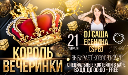 DJ Саша Есенина выберет Короля Вечеринки, который будет коронован в присутствии всех гостей!