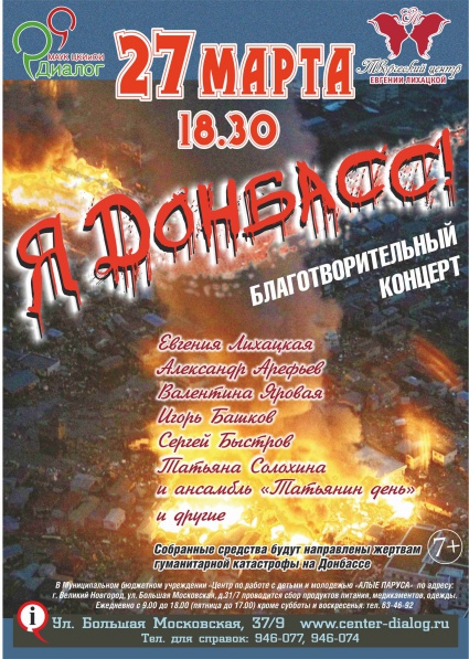 Культурный Центр "Диалог" и творческий центр Евгении Лихацкой приглашают на благотворительный концерт "Я Донбасс".