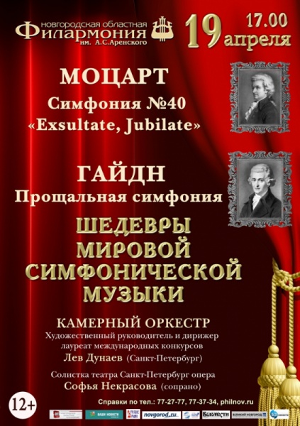 Камерный оркестр Новгородской филармонии, Художественный руководитель и дирижер, лауреат международных конкурсов Лев Дунаев (Санкт-Петербург). Солистка Театра Санкт-Петербург опера Софья Некрасова (сопрано)