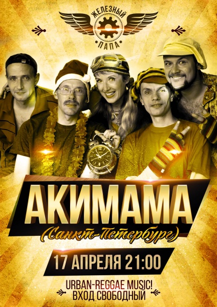 17 апреля порция солнечной музыки в "Железном папе"! В Великом Новгороде выступит группа "Акимама"!