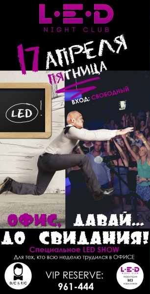 В ночном клубе LED пройдёт вечеринка для тех, кто всю неделю трудился на благо Родины, — "Офис, давай, до свидания".