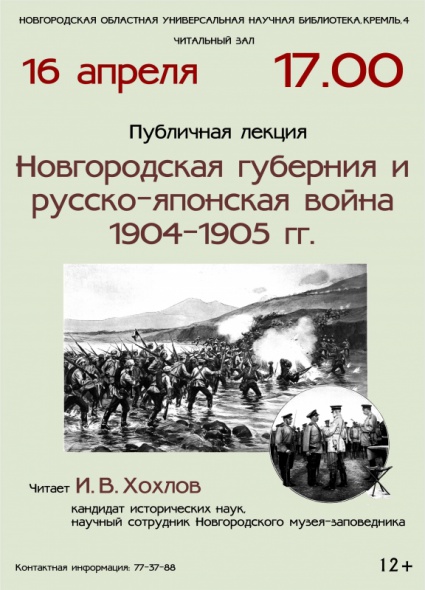 Новгородская областная универсальная научная библиотека приглашает на публичную лекцию И. В. Хохлова «Новгородская губерния и русско-японская война. 1904-1905 гг.».