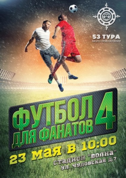 В Великом Новгороде "Бюро приключений "53 тура" организует четвёртый турнир по мини-футболу для фанатов. Соревнования пройдут на стадионе "Волна".