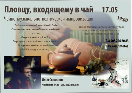 Под звуки флейт, песен БГ, Левитанского, Дольского и других прекрасных авторов, стихи Тарковского, Ли Бо и других прекрасных поэтов вы насладитесь вкусом прекрасного чая Те Гуань Инь, жемчужины китайской чайной традиции.