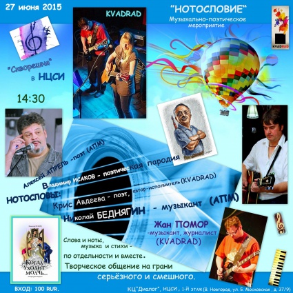 Слова и ноты, музыка и стихи - по отдельности и вместе. Творческое общение на грани серьёзного и смешного. Это должно быть интересно.