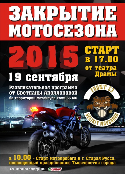 В Великом Новгороде состоится закрытие мотоциклетного сезона - 2015.