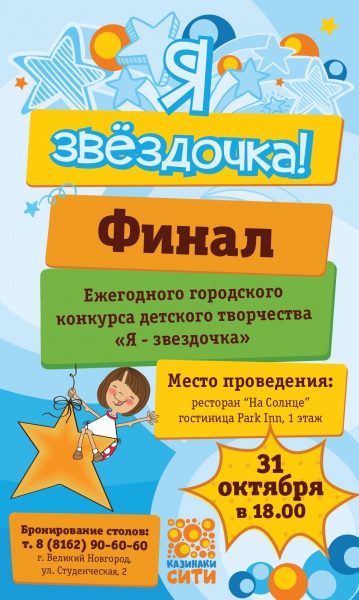 Детский развлекательный центр "Казинаки Сити" приглашает вас на финал ежегодного городского конкурса детского творчества "Я - звёздочка"